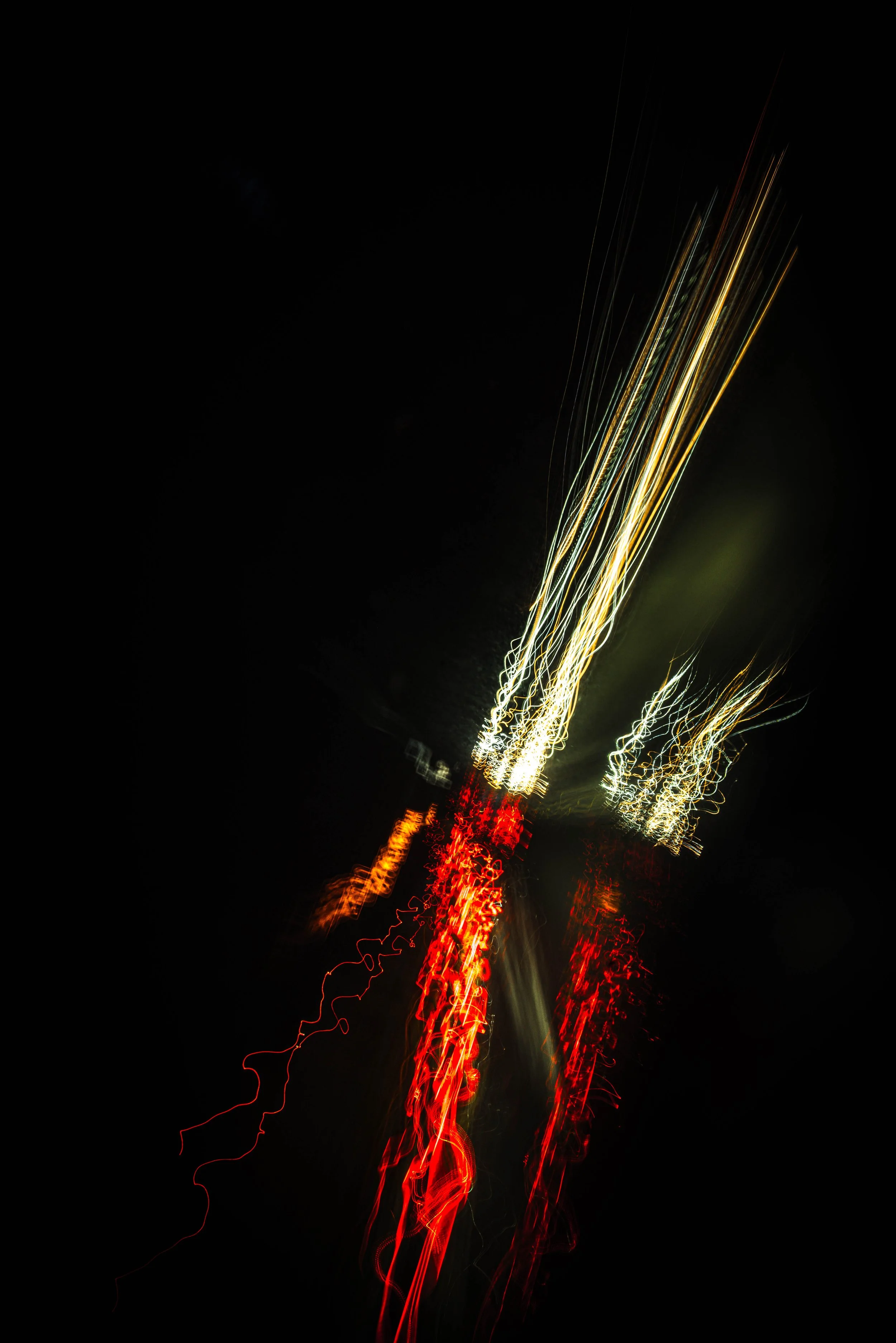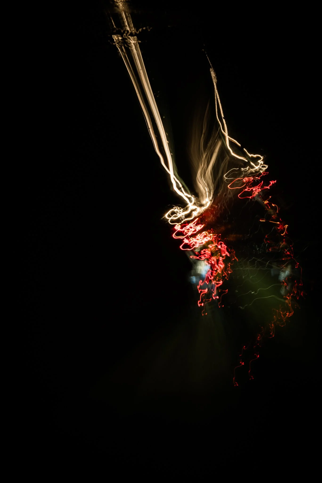 With a slow shutter speed, abstraction is created by letting minimal light stretch and scatter across time. The challenge lies in guiding that uncertainty just enough for form to emerge from darkness.